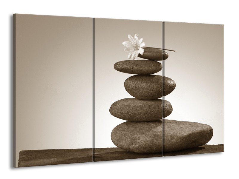 Canvas Schilderij Stenen | Sepia | 165x100cm 3Luik