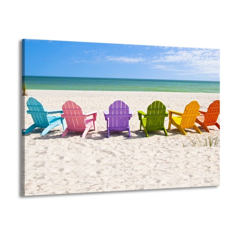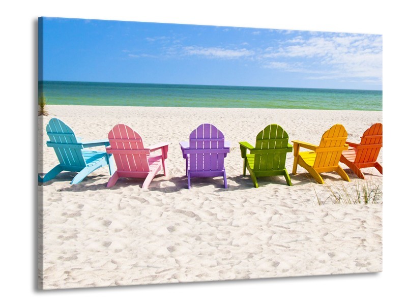 Canvas Schilderij Strand, Zee | Blauw, Crème, Groen | 100x70cm 1Luik