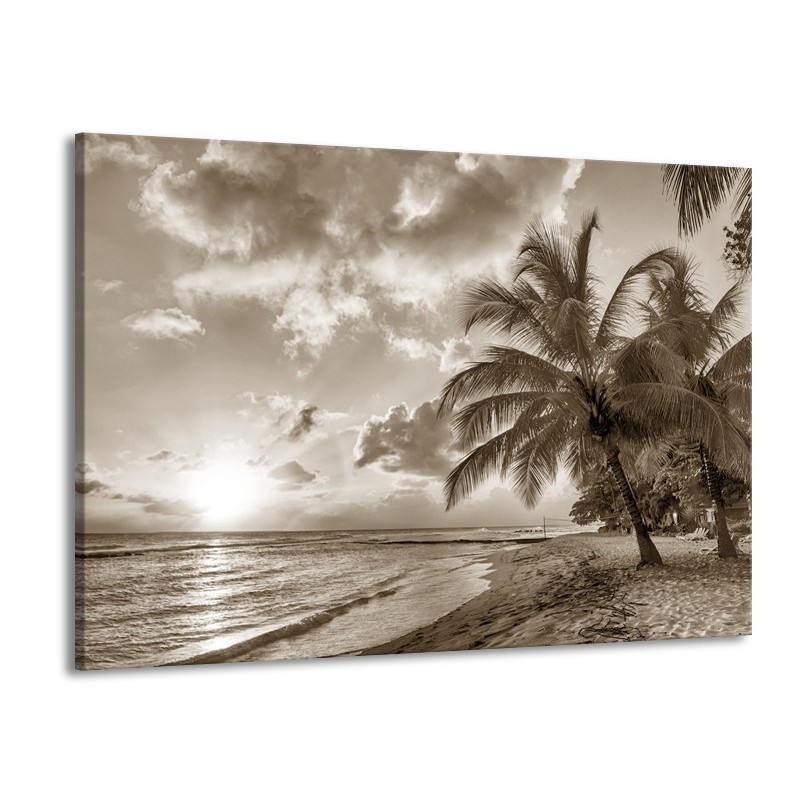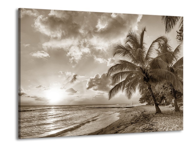 Canvas Schilderij Strand, Zee | Sepia | 100x70cm 1Luik