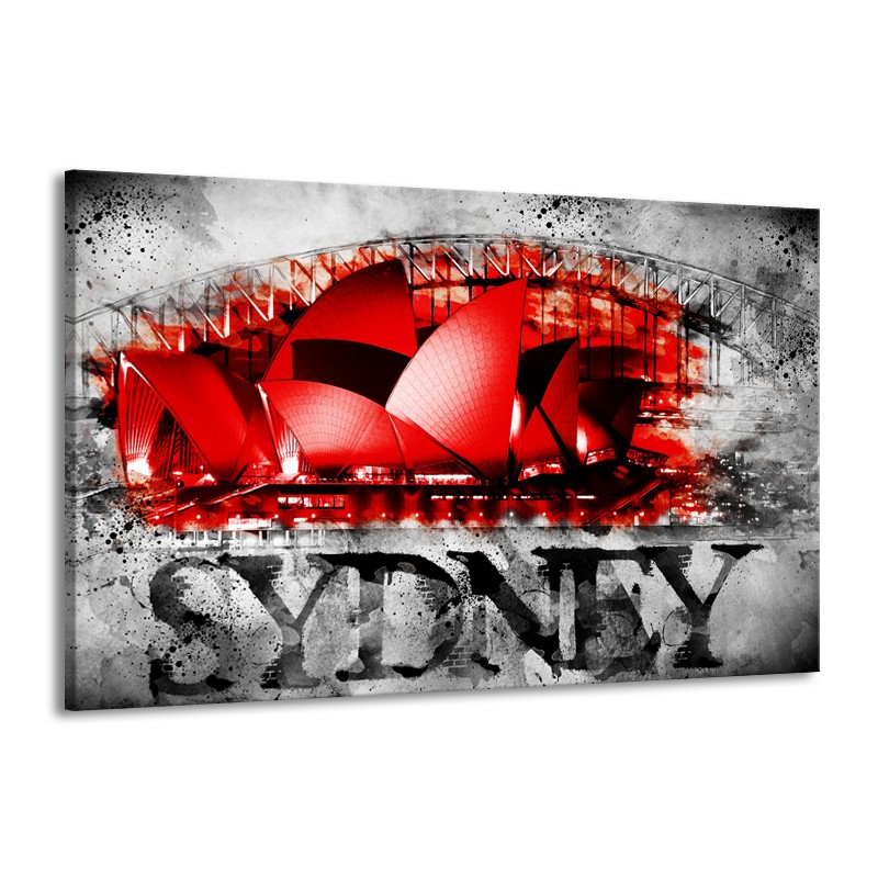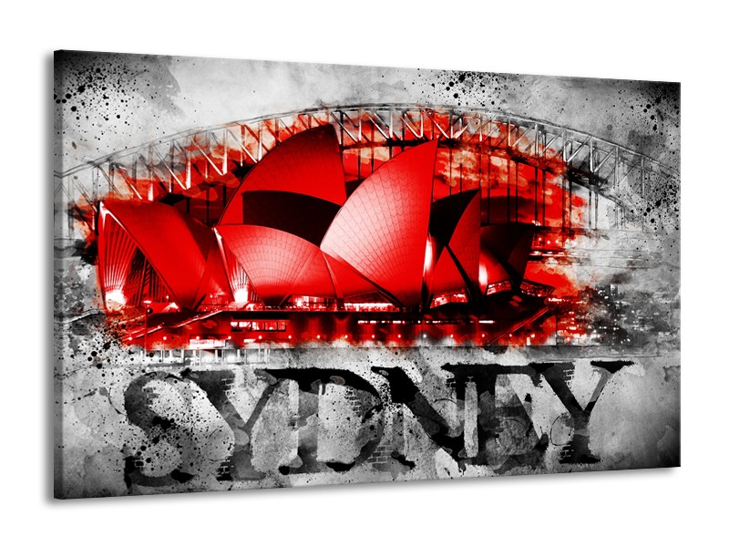 Canvas Schilderij Sydney, Steden | Rood, Zwart, Grijs | 140x90cm 1Luik