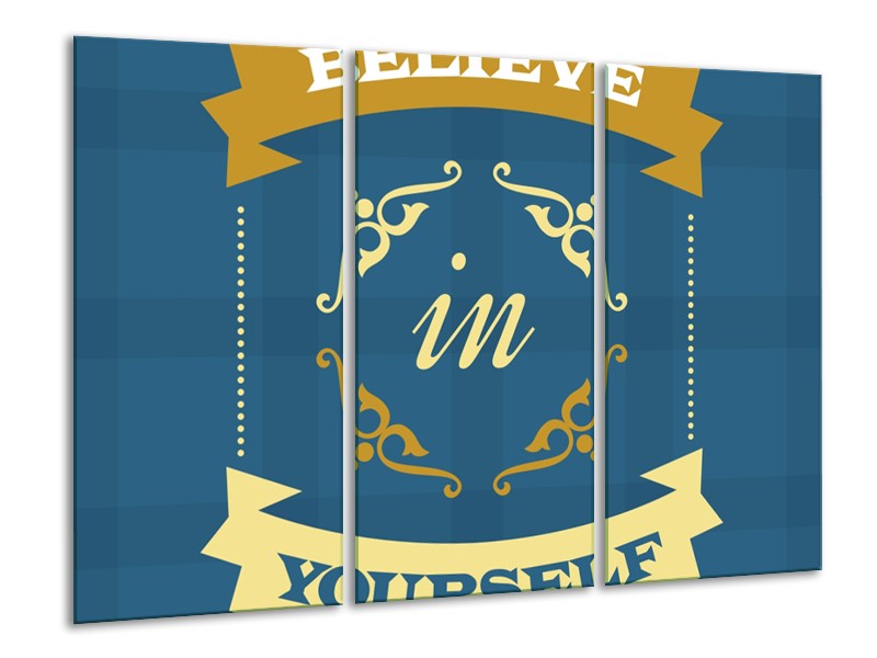 Canvas Schilderij Tekst | Blauw, Geel | 120x80cm 3Luik
