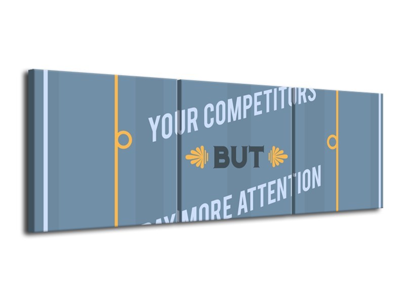 Canvas Schilderij Tekst | Blauw, Grijs, Geel | 120x40cm 3Luik