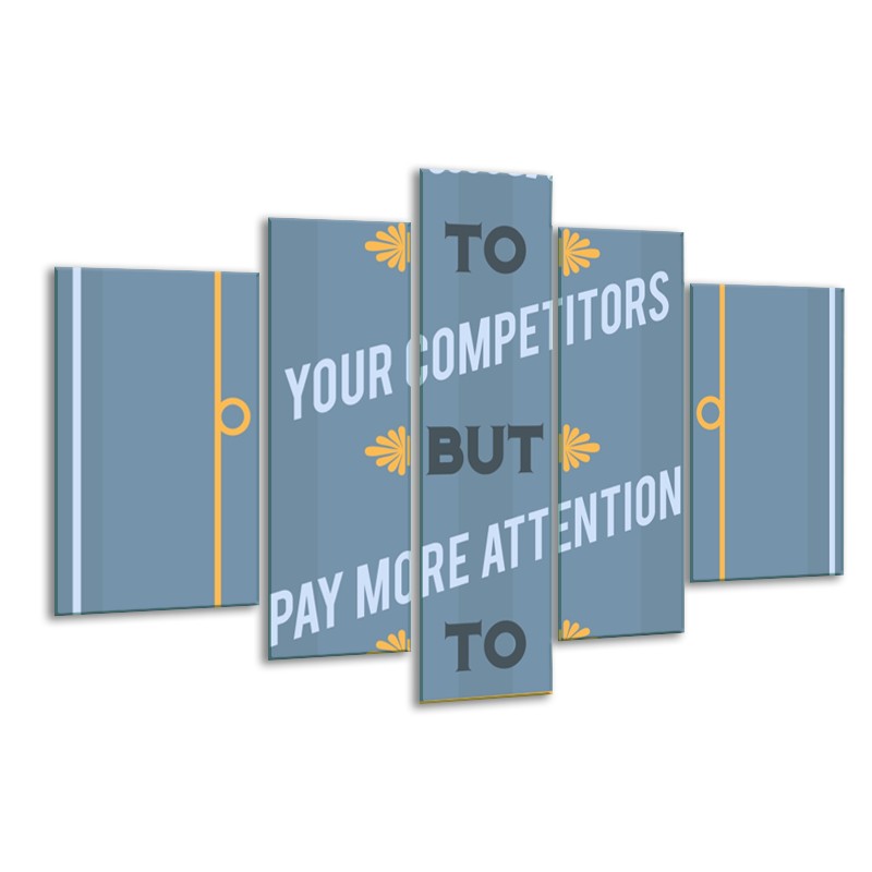 Canvas Schilderij Tekst | Blauw, Grijs, Geel | 170x100cm 5Luik