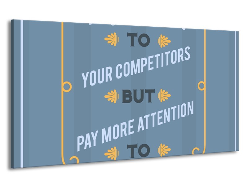 Canvas Schilderij Tekst | Blauw, Grijs, Geel | 190x100cm 1Luik