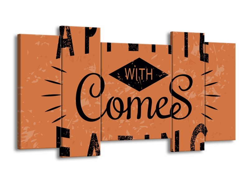Canvas Schilderij Tekst | Bruin, Oranje, Zwart | 120x65cm 5Luik