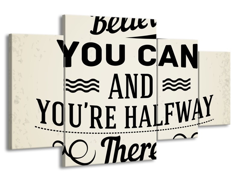 Canvas Schilderij Tekst | Crème, Zwart | 160x90cm 4Luik