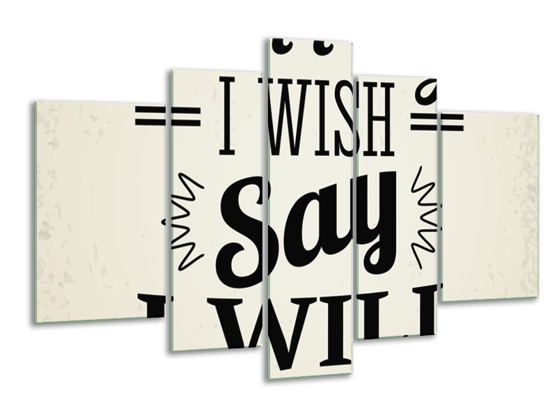 Canvas Schilderij Tekst | Crème, Zwart | 170x100cm 5Luik