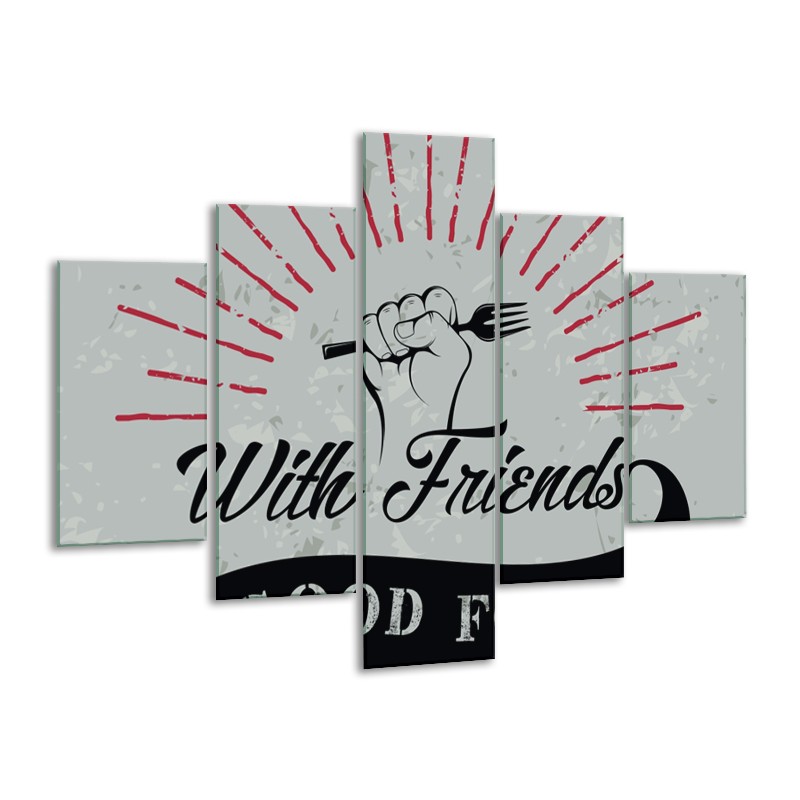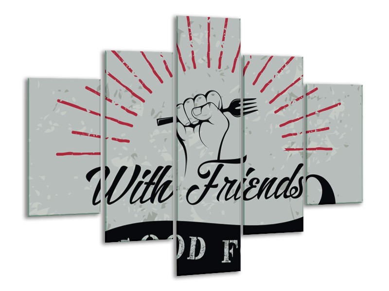 Canvas Schilderij Tekst | Grijs, Groen, Rood | 100x70cm 5Luik