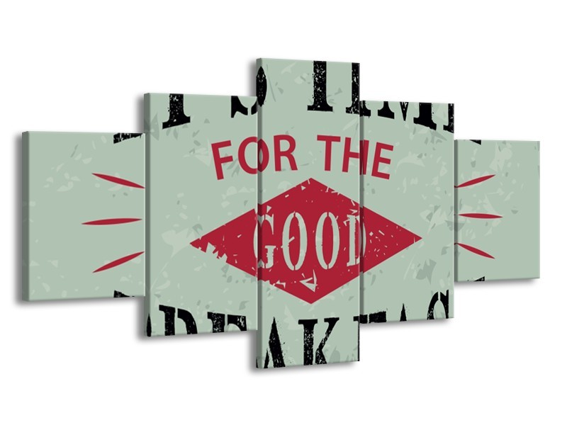 Canvas Schilderij Tekst | Groen, Rood, Zwart | 150x80cm 5Luik