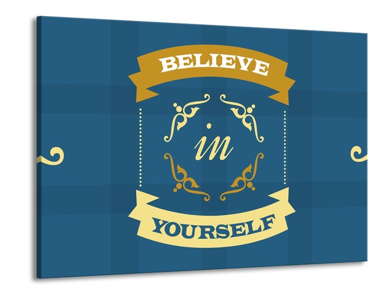 Canvas Schilderij Tekst, Modern | Blauw, Geel | 100x70cm 1Luik