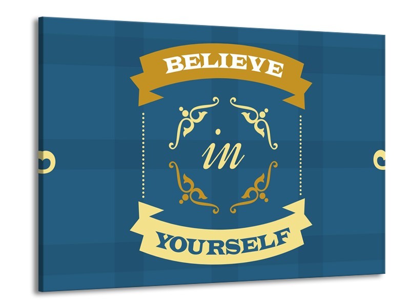 Canvas Schilderij Tekst, Modern | Blauw, Geel | 100x70cm 1Luik
