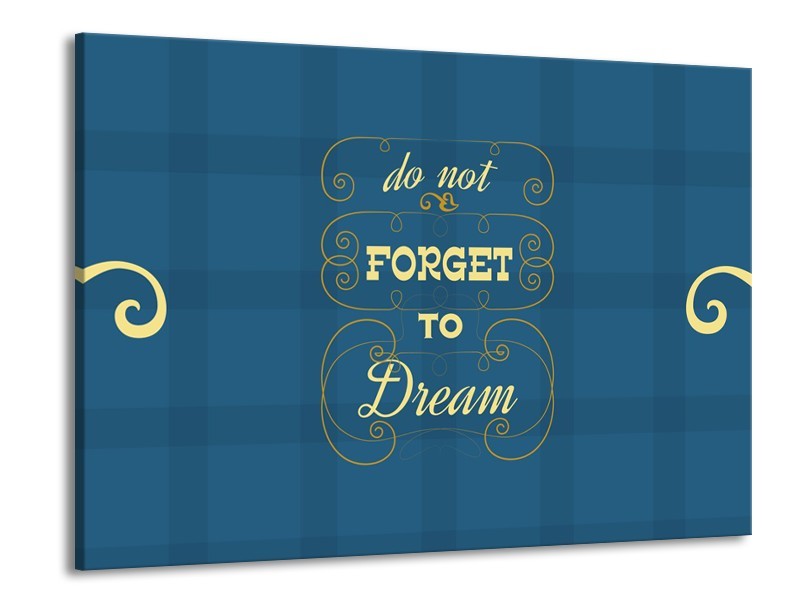 Canvas Schilderij Tekst, Modern | Blauw, Geel | 100x70cm 1Luik
