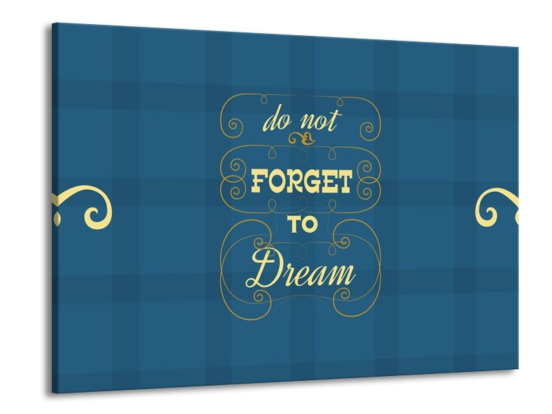 Canvas Schilderij Tekst, Modern | Blauw, Geel | 100x70cm 1Luik