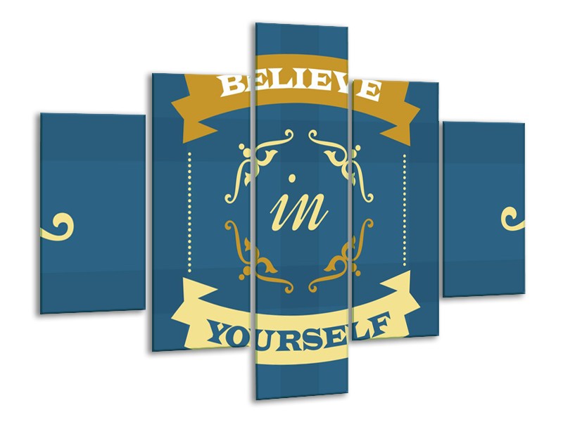 Canvas Schilderij Tekst, Modern | Blauw, Geel | 100x70cm 5Luik