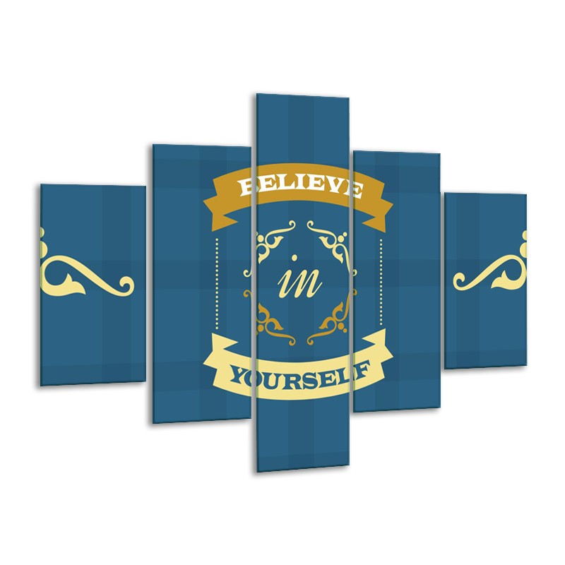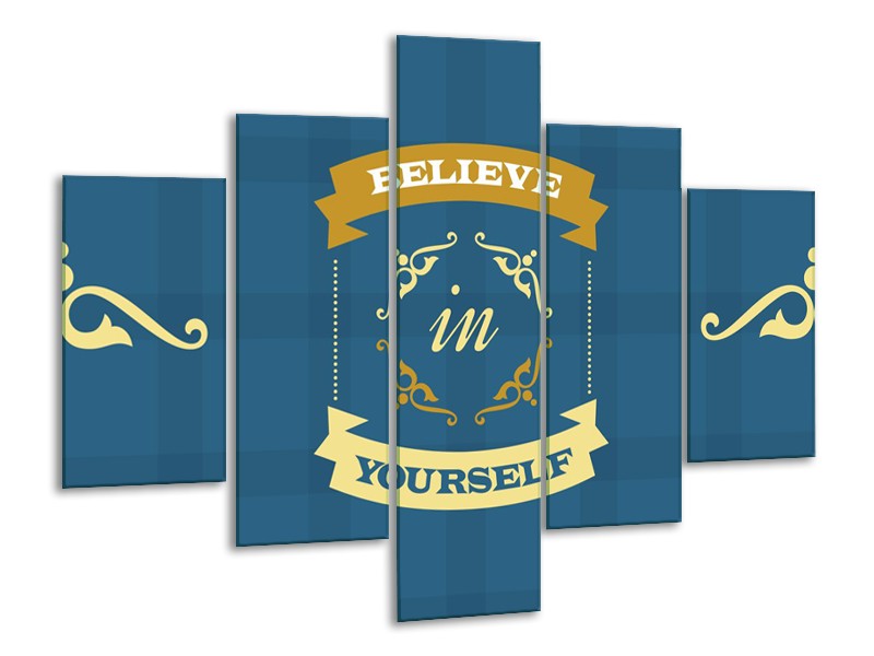 Canvas Schilderij Tekst, Modern | Blauw, Geel | 100x70cm 5Luik