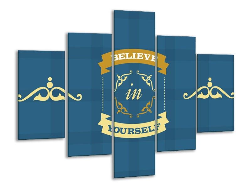 Canvas Schilderij Tekst, Modern | Blauw, Geel | 100x70cm 5Luik