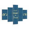 Canvas Schilderij Tekst, Modern | Blauw, Geel | 100x70cm 5Luik