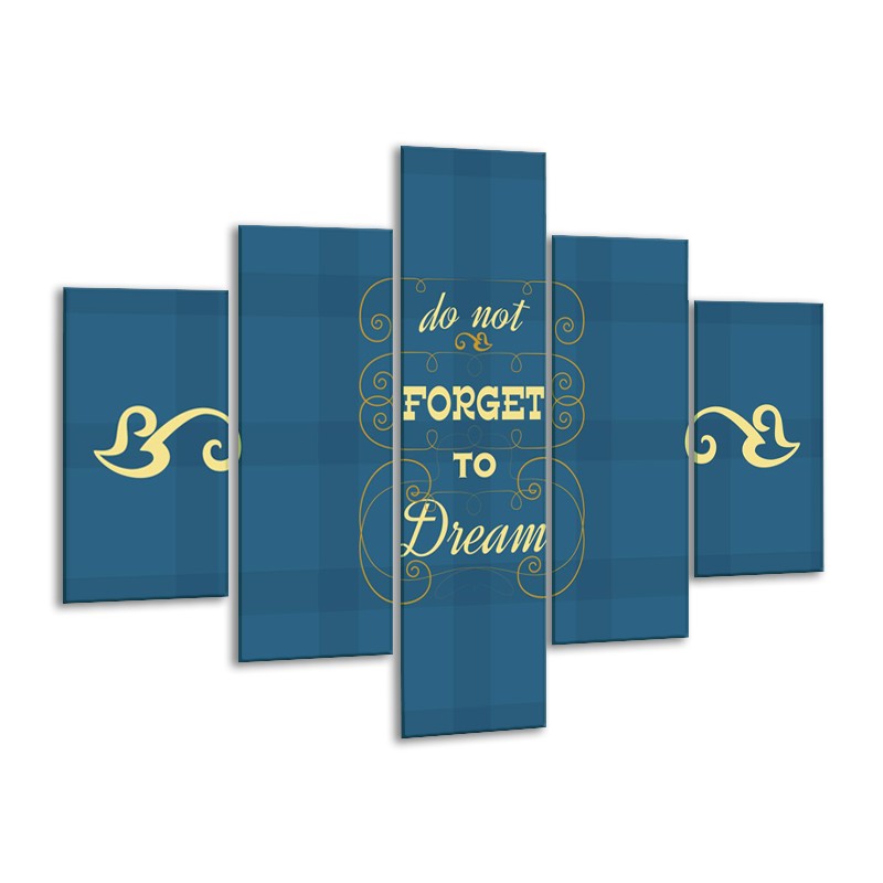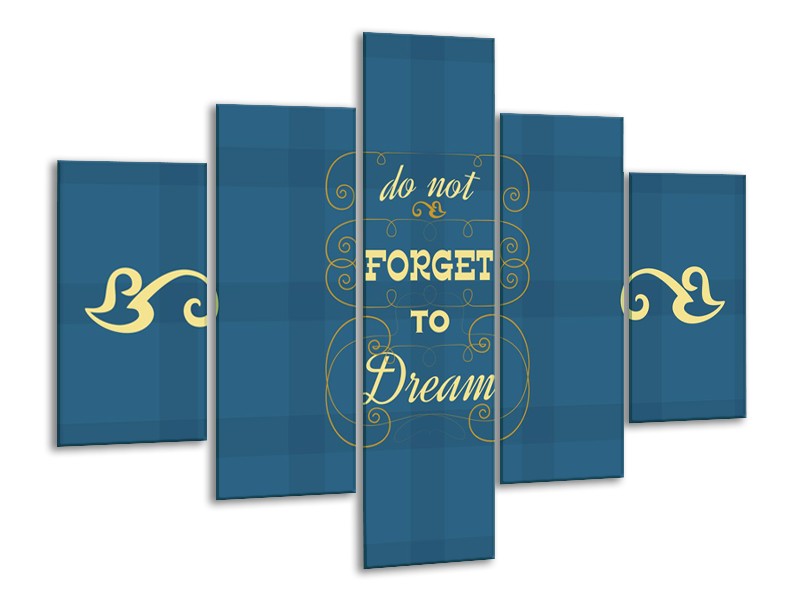 Canvas Schilderij Tekst, Modern | Blauw, Geel | 100x70cm 5Luik