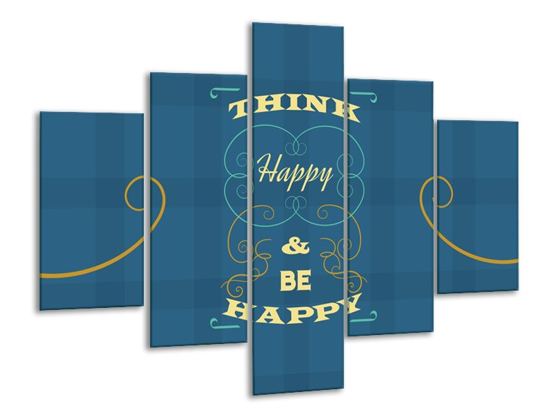 Canvas Schilderij Tekst, Modern | Blauw, Geel | 100x70cm 5Luik