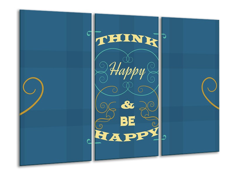 Canvas Schilderij Tekst, Modern | Blauw, Geel | 120x80cm 3Luik