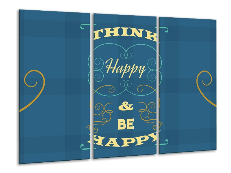 Canvas Schilderij Tekst, Modern | Blauw, Geel | 120x80cm 3Luik
