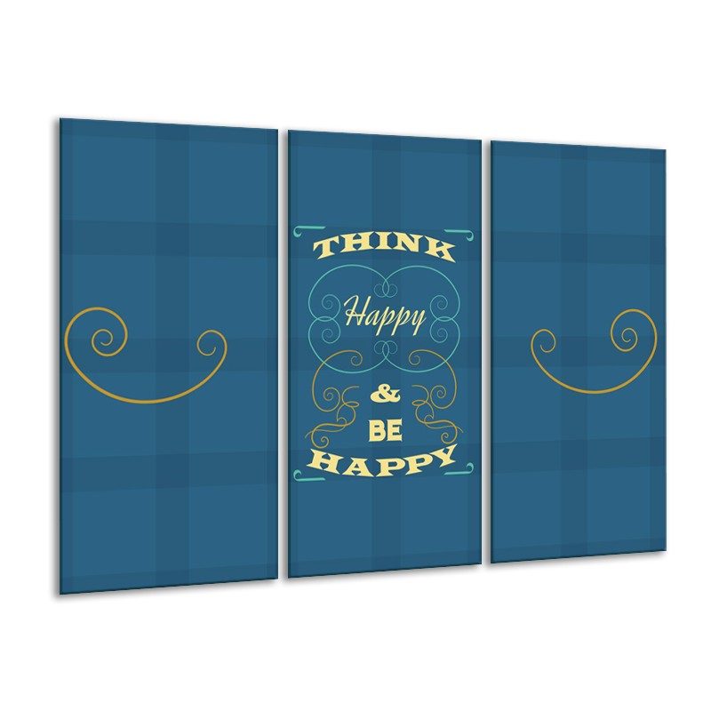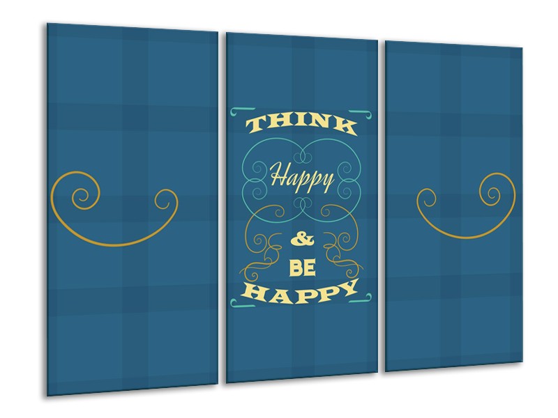 Canvas Schilderij Tekst, Modern | Blauw, Geel | 120x80cm 3Luik