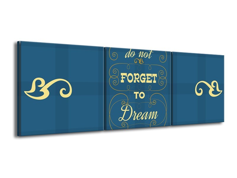 Canvas Schilderij Tekst, Modern | Blauw, Geel | 150x50cm 3Luik