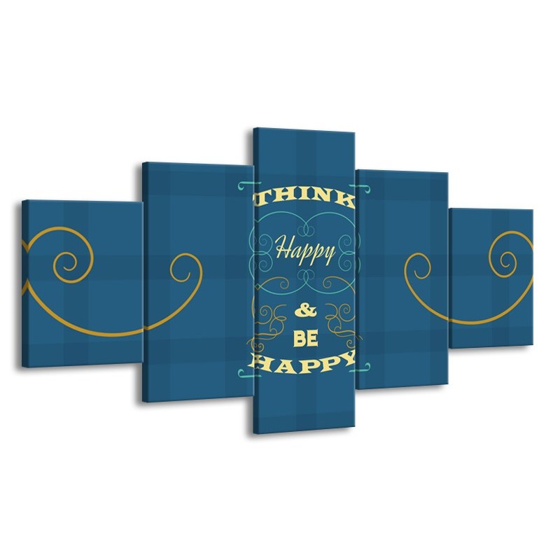 Canvas Schilderij Tekst, Modern | Blauw, Geel | 150x80cm 5Luik