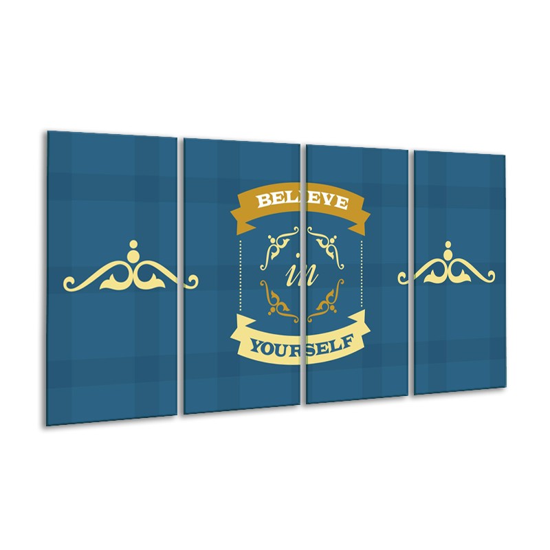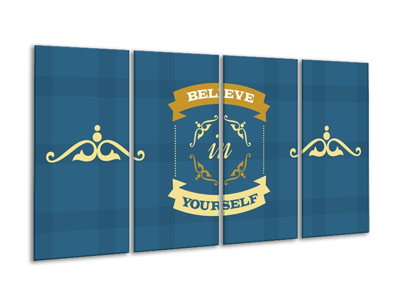 Canvas Schilderij Tekst, Modern | Blauw, Geel | 160x80cm 4Luik