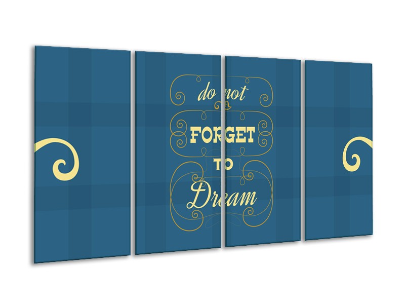 Canvas Schilderij Tekst, Modern | Blauw, Geel | 160x80cm 4Luik