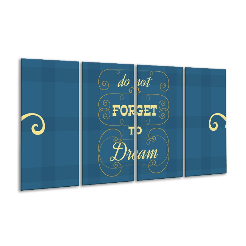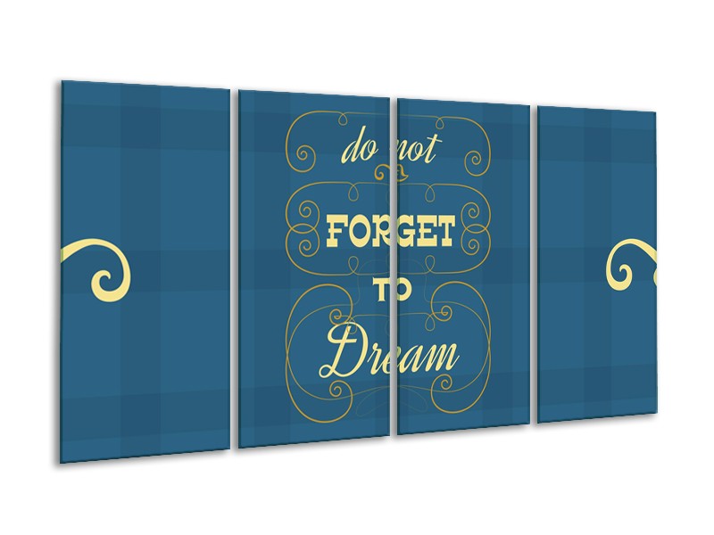 Canvas Schilderij Tekst, Modern | Blauw, Geel | 160x80cm 4Luik
