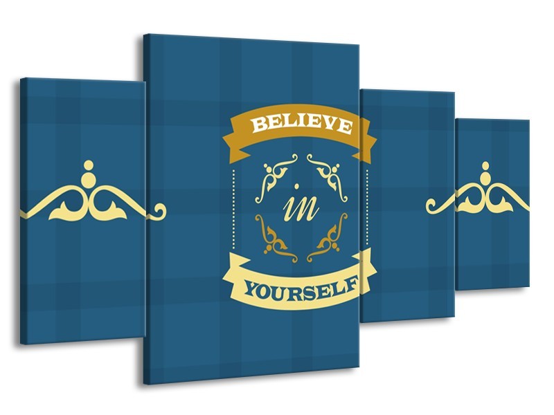 Canvas Schilderij Tekst, Modern | Blauw, Geel | 160x90cm 4Luik
