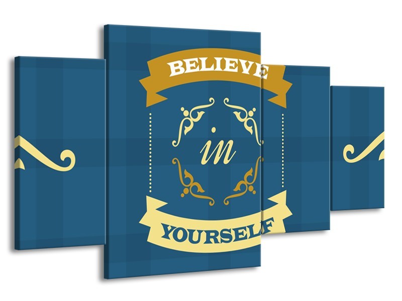 Canvas Schilderij Tekst, Modern | Blauw, Geel | 160x90cm 4Luik