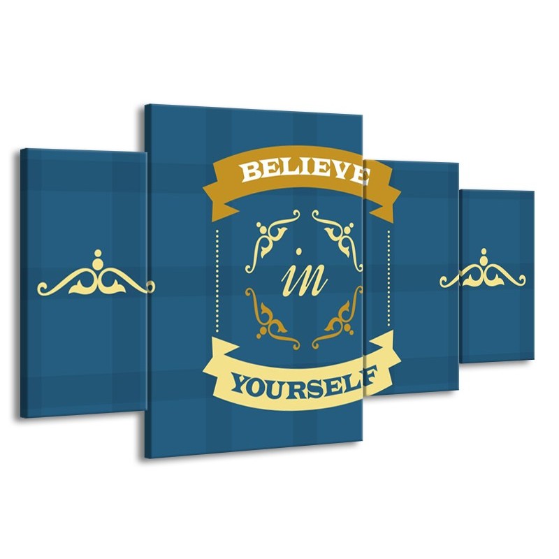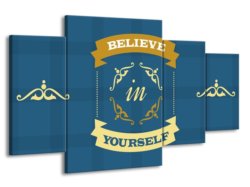 Canvas Schilderij Tekst, Modern | Blauw, Geel | 160x90cm 4Luik