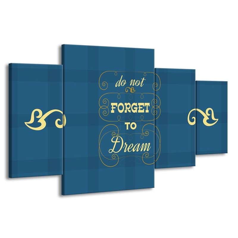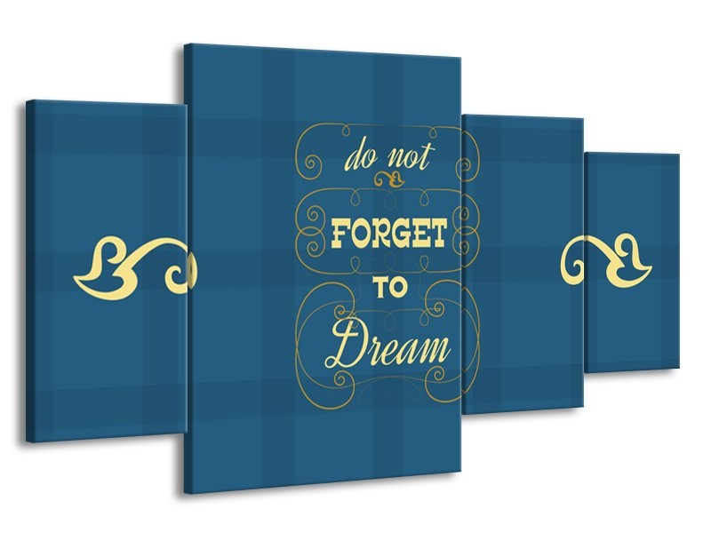 Canvas Schilderij Tekst, Modern | Blauw, Geel | 160x90cm 4Luik