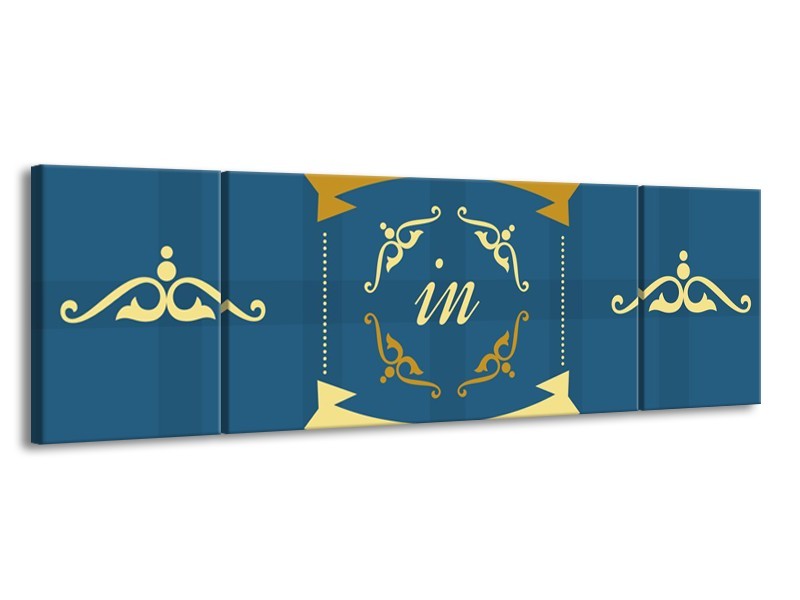 Canvas Schilderij Tekst, Modern | Blauw, Geel | 170x50cm 3Luik