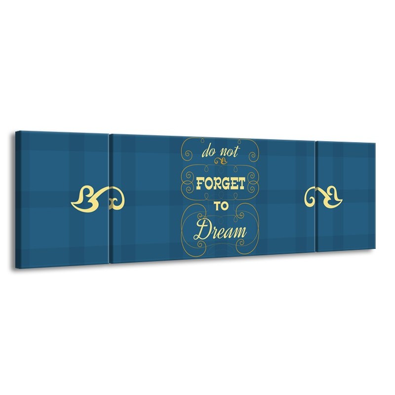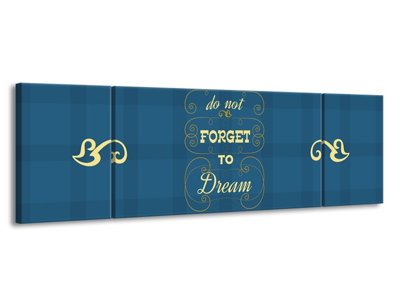 Canvas Schilderij Tekst, Modern | Blauw, Geel | 170x50cm 3Luik
