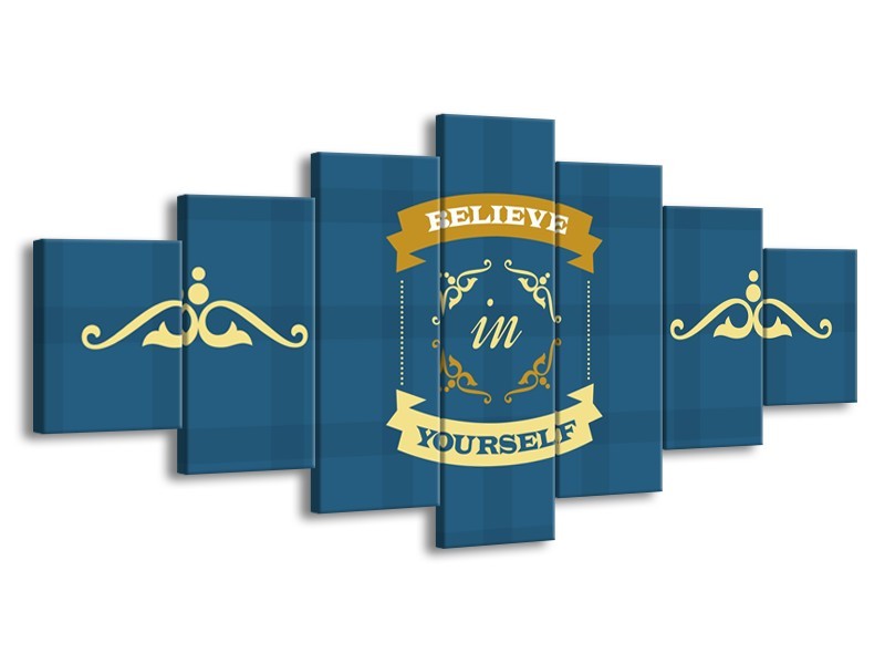 Canvas Schilderij Tekst, Modern | Blauw, Geel | 210x100cm 7Luik