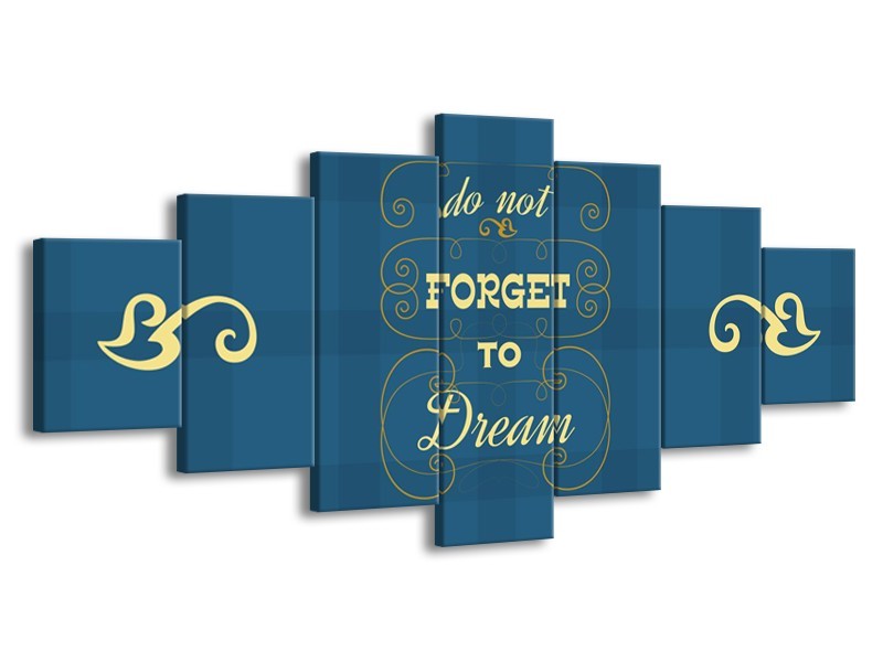 Canvas Schilderij Tekst, Modern | Blauw, Geel | 210x100cm 7Luik