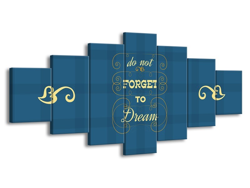 Canvas Schilderij Tekst, Modern | Blauw, Geel | 210x100cm 7Luik