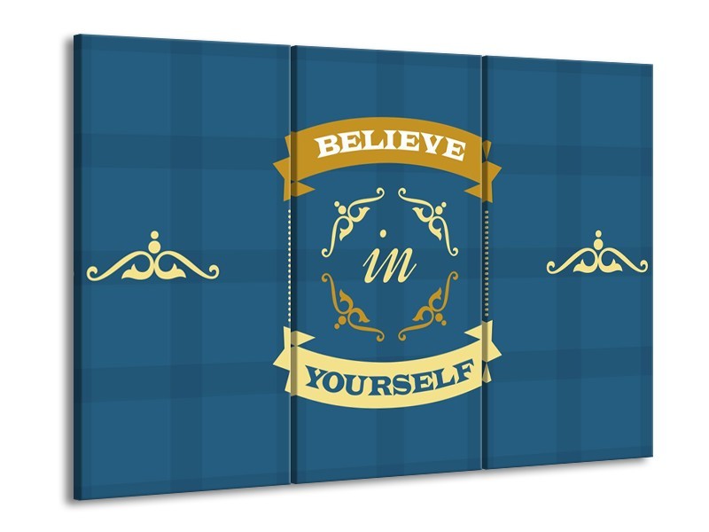Canvas Schilderij Tekst, Modern | Blauw, Geel | 60x90cm 3Luik
