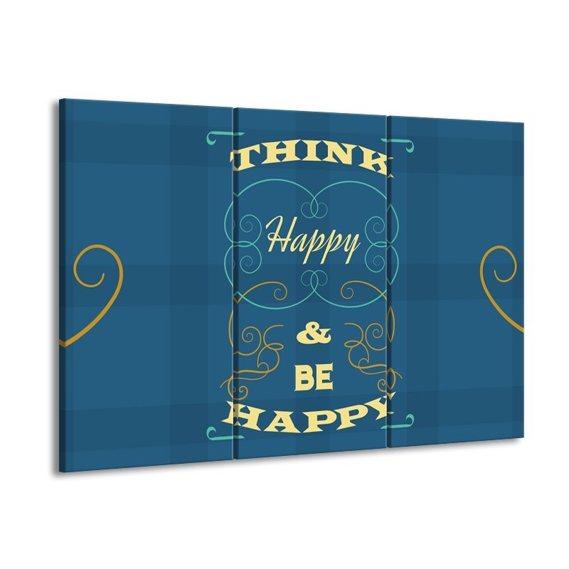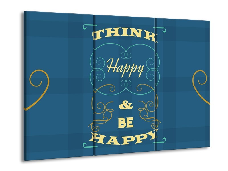 Canvas Schilderij Tekst, Modern | Blauw, Geel | 60x90cm 3Luik