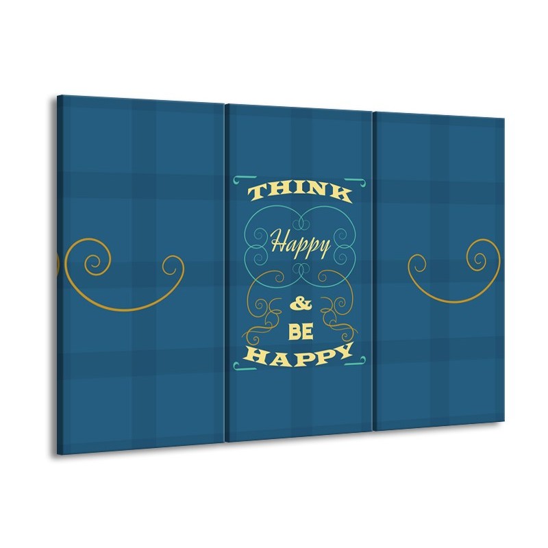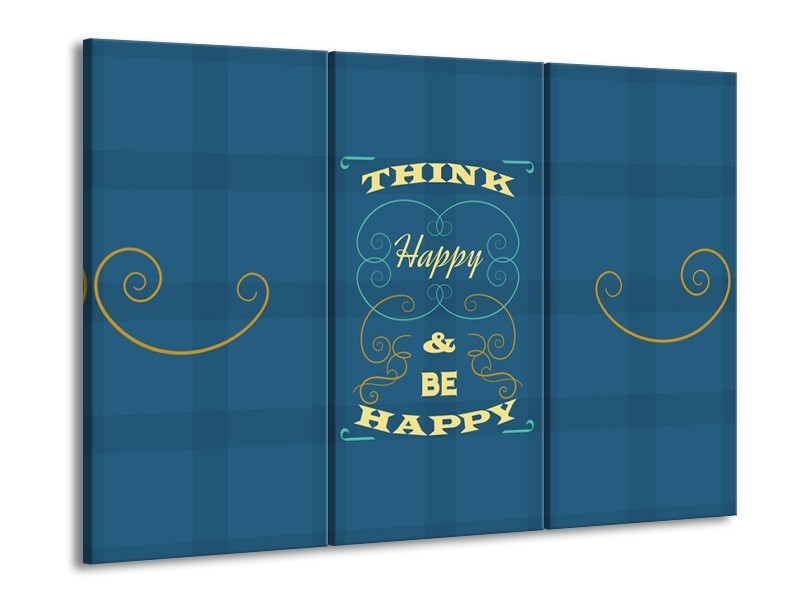 Canvas Schilderij Tekst, Modern | Blauw, Geel | 60x90cm 3Luik