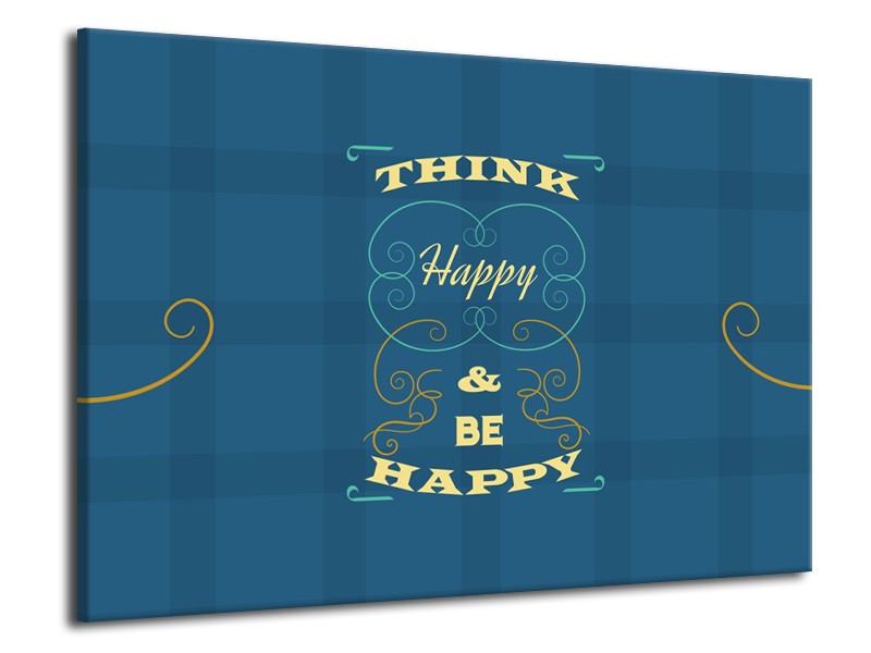 Canvas Schilderij Tekst, Modern | Blauw, Geel | 70x50cm 1Luik