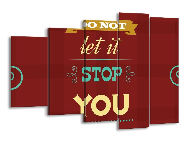 Canvas Schilderij Tekst, Modern | Bruin, Rood, Geel | 150x100cm 5Luik