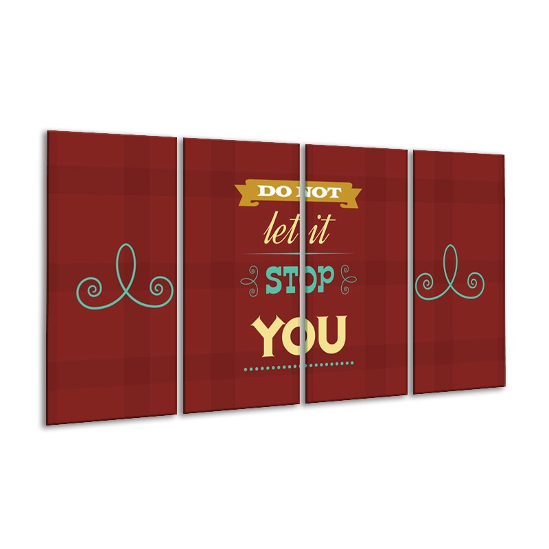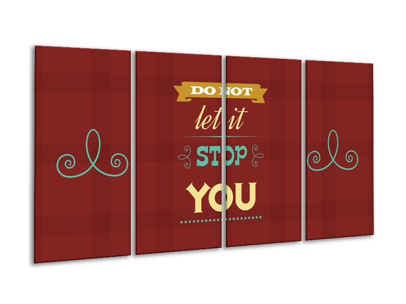 Canvas Schilderij Tekst, Modern | Bruin, Rood, Geel | 160x80cm 4Luik