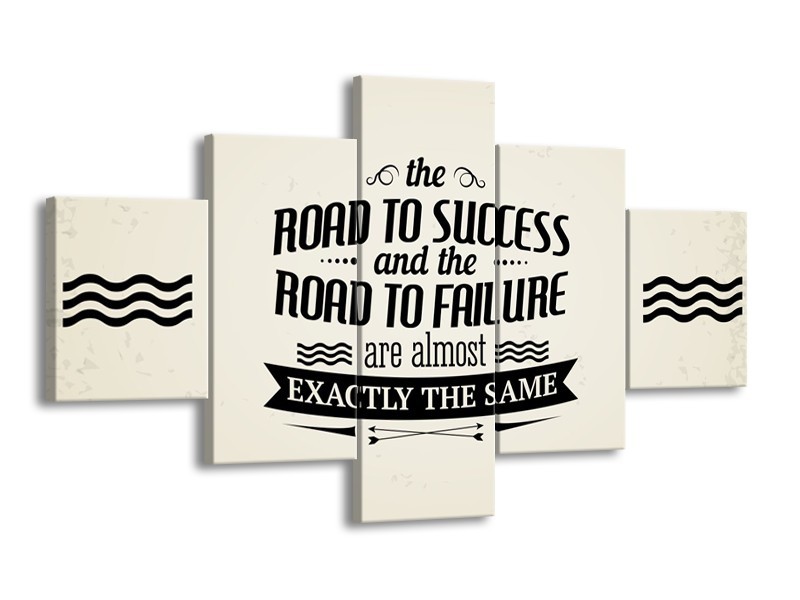 Canvas Schilderij Tekst, Modern | Crème, Zwart | 125x70cm 5Luik
