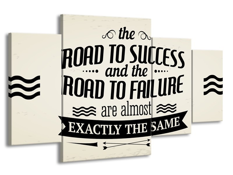 Canvas Schilderij Tekst, Modern | Crème, Zwart | 160x90cm 4Luik