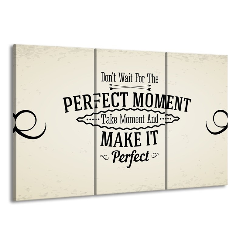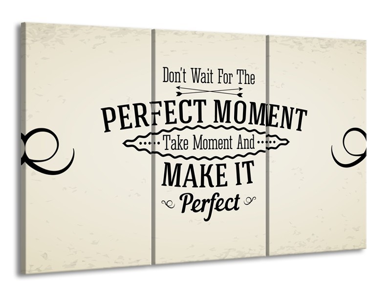 Canvas Schilderij Tekst, Modern | Crème, Zwart | 165x100cm 3Luik