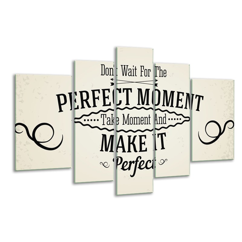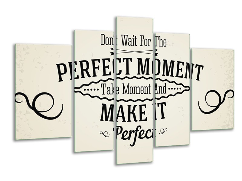 Canvas Schilderij Tekst, Modern | Crème, Zwart | 170x100cm 5Luik